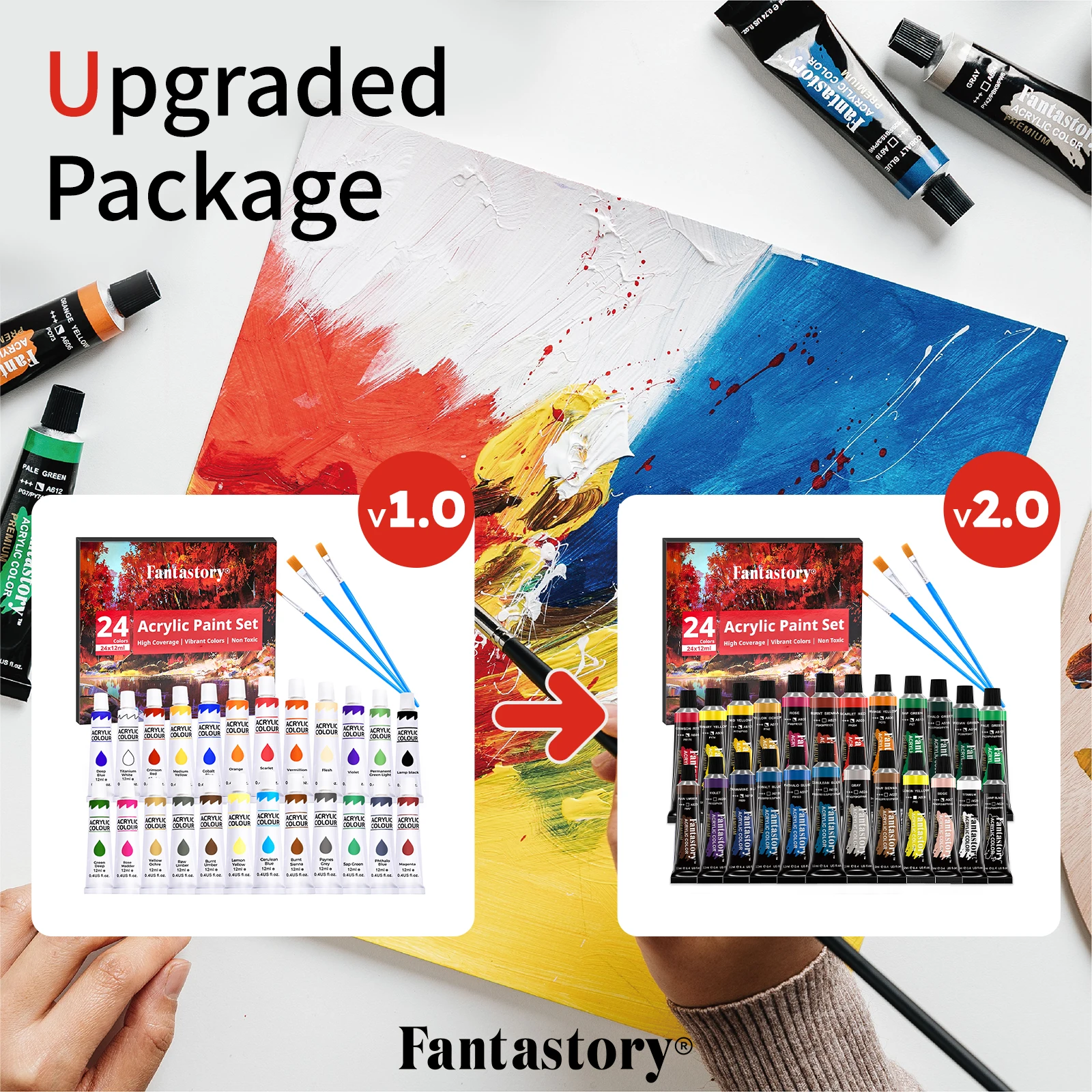 12ML 24 Colors Acrylic Paint Set with 3 Paint Brushes, Ideal Gifts for Painters, Paint Supplies for Adults, Drawing & Painting