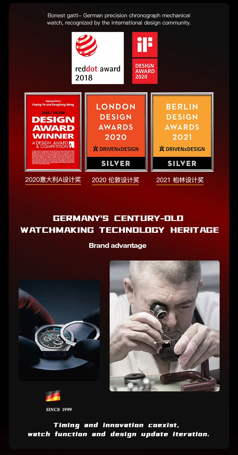 BONEST GATTI European Button Roulette Fun Game Sapphire Glass Diamond Rotating Dial Mechanical Watch Leather Band Men's Watch