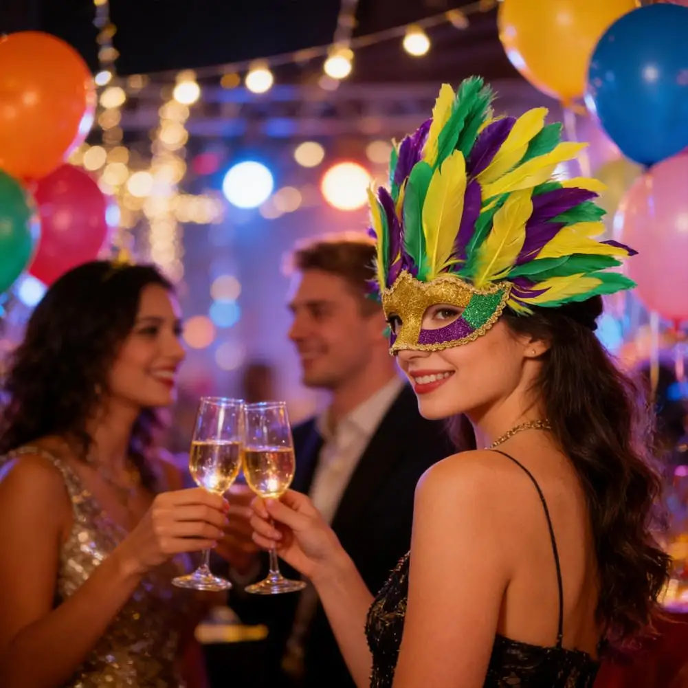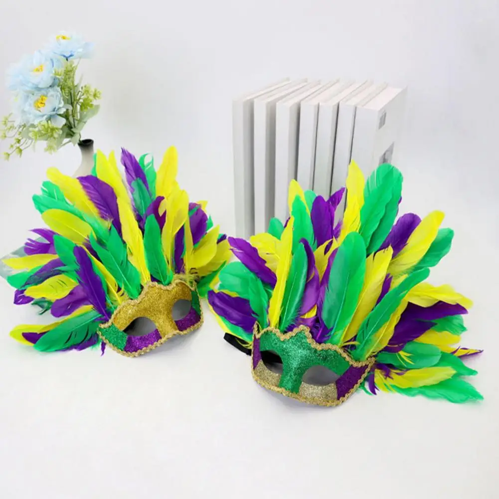 Premium Feather Material: Crafted from high-quality simulated feathers, this masque offers a luxurious feel and vibrant colors that catch the eye. The powder-dusted surface enhances its shine under light, adding an elegant shine perfect for festive occasions.