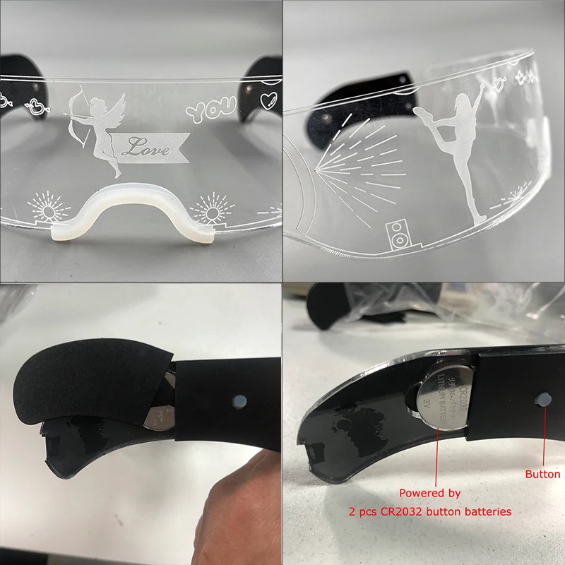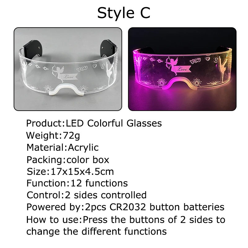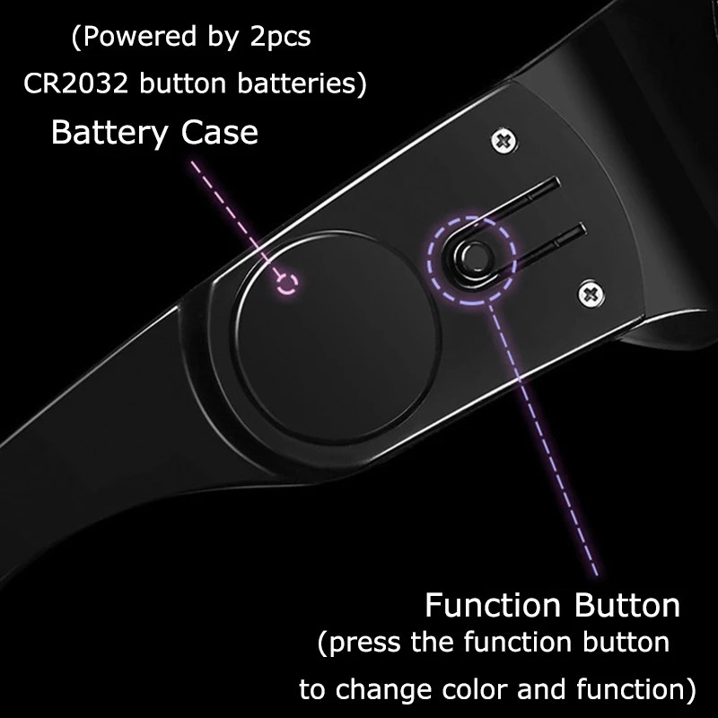 Packet Incuding:1pc X LED Glasses,2pcs X CR2032 Button Batteries