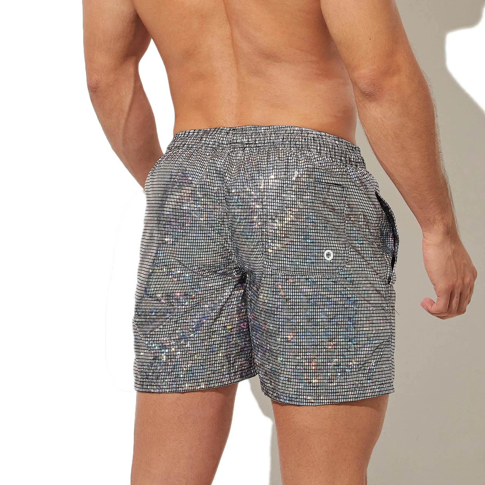 Item Name: Men's Metal Print Shiny Beach Short Pants Beachwear Swimsuit Casual Comfortable Homewear