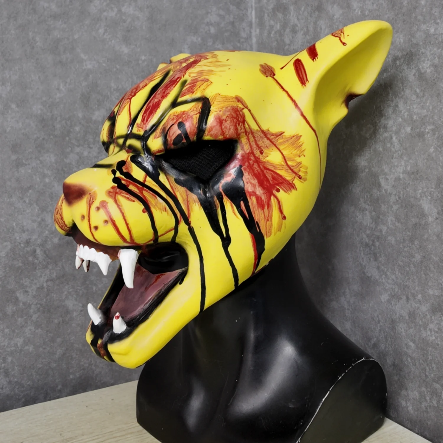 Horror Beast Mask | Bloody Tiger Style Scary Latex Face Mask | Halloween Party Cosplay Costume Prop For Festivals & Night Events