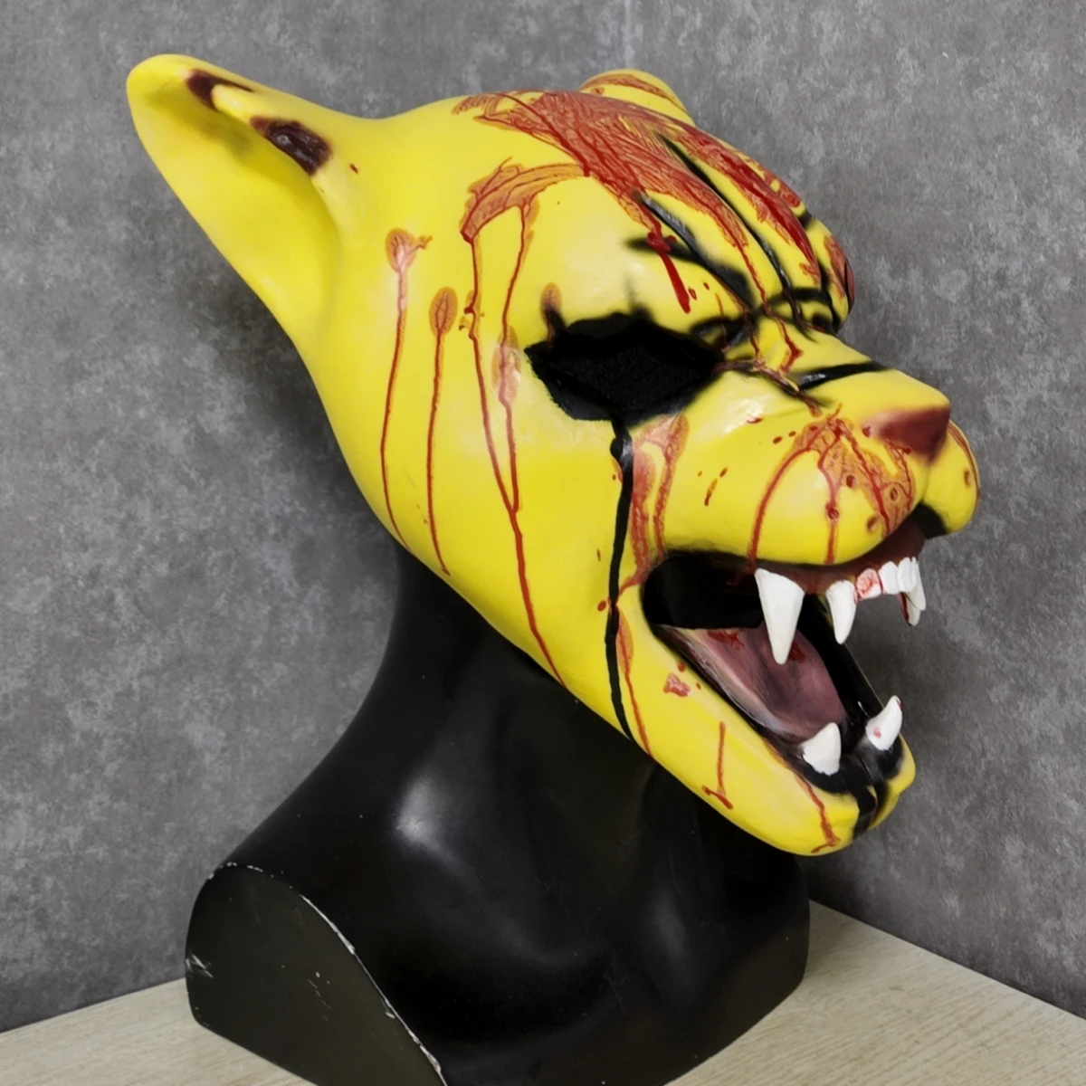 Step into the spotlight with this terrifying Bloody Beast Latex Mask, designed for thrill-seekers, performers, and party lovers who want an unforgettable entrance. The fierce open-mouth snarl, vivid blood-splatter details, and bold yellow tiger-inspired design instantly amplify your presence at any event.
