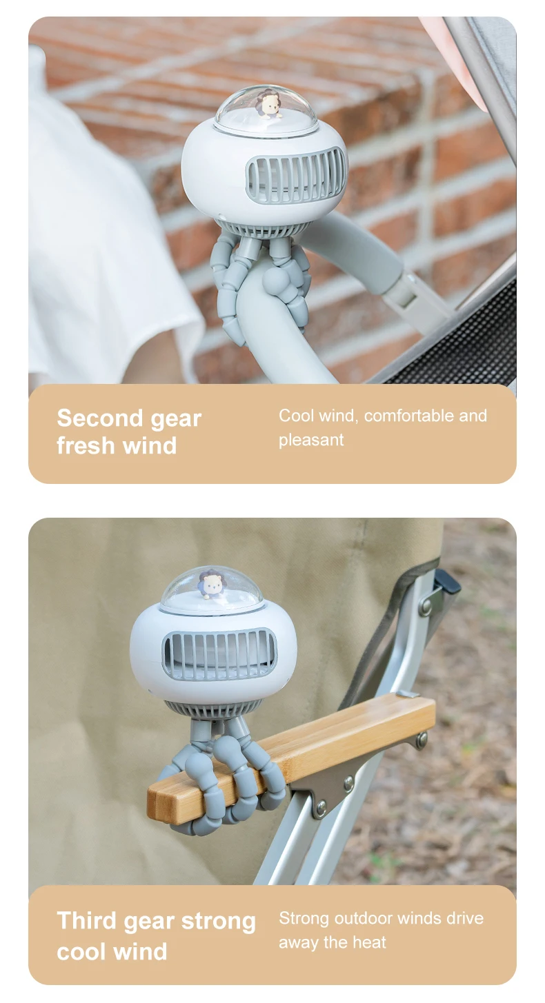 1. Multifunctional fan,standable/handheldable/clipped/wrapped.