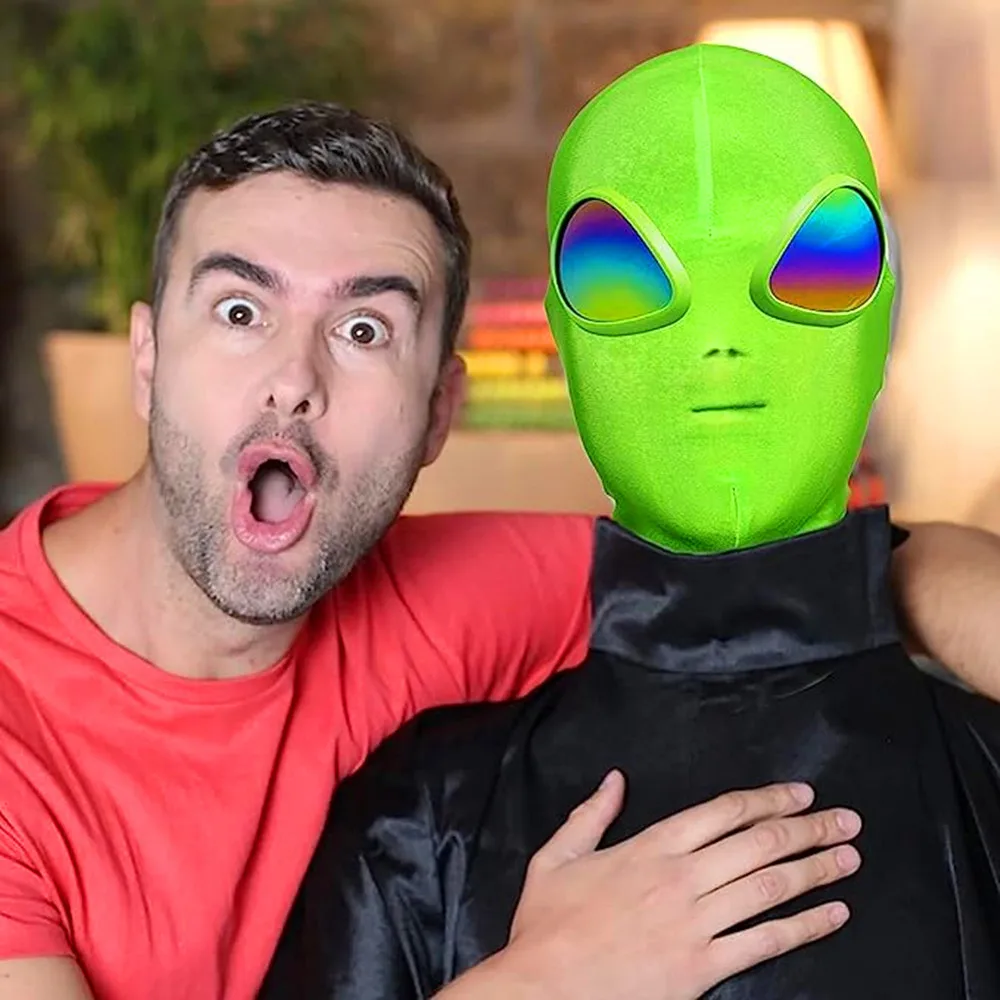 π½2023 new upgraded for alien face mask: In the past, the aliens mask eyes used Polyester, so itβs not clear and it looks cheap. Now we upgrade it to high-definition gradient glasses to make your vision clearer. It also looks cool, and the price will never exceed your budget.