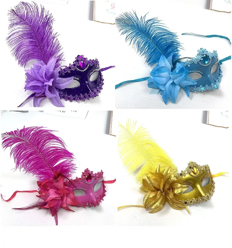 Halloween Mask: A mask made of plastic, beautifully decorated with beads, lace, feathers, or flowers, very exquisite.