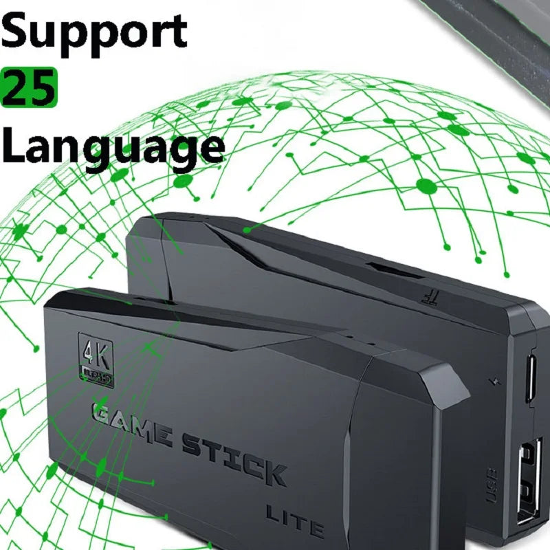 This is the latest wireless TV game console, which can support 25 languages, and is equipped with a 64G memory card, built-in more than 20,000 games, can search, collect, archive, and support downloading favorite games.