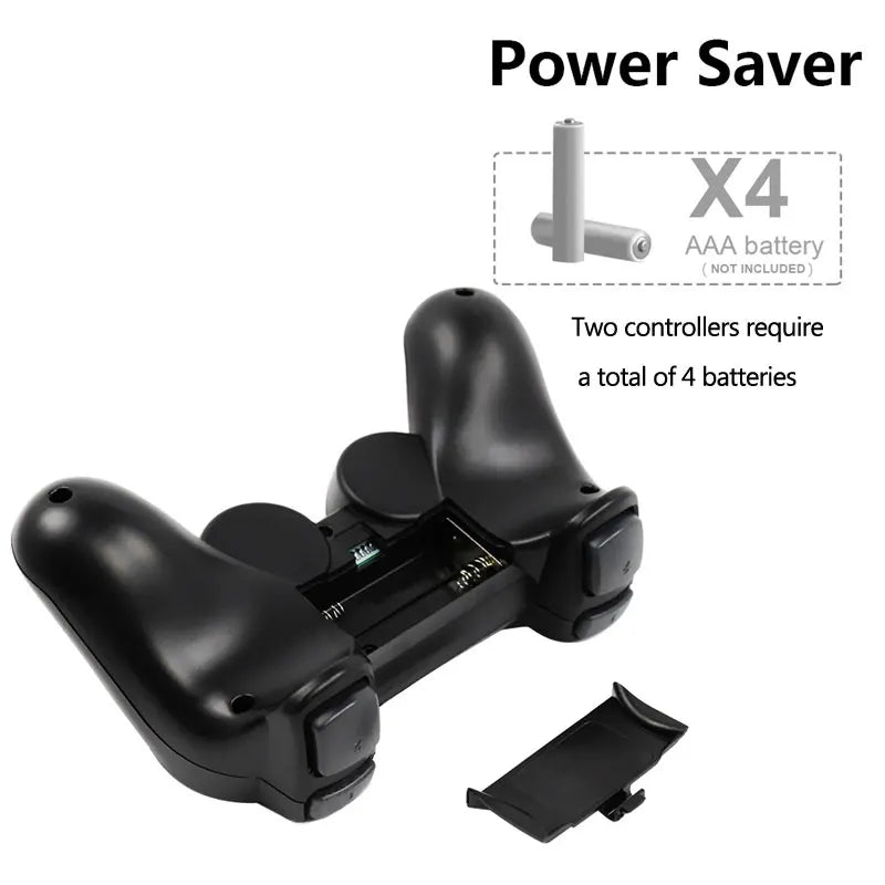 Low power infrared connection! This controller requires four AAA batteries. Due to safety issues during transportation, our packaging does not send batteries. Customers need to buy at a local store. Why should design AAA controllers for customers? According to our many years of sales experience, we believe that the lithium battery game controller has a certain life span, we want to provide you with better service and quality, the handle solution using AAA battery is the best!